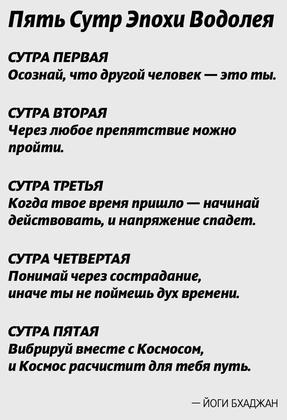 Пять лучших учителей раскроют нам суть каждой из Сутр, и мы сможем погрузиться в понимание Эпохи Водолея через сакральные практики и медитации, которые мастера подобрали специально для вас.