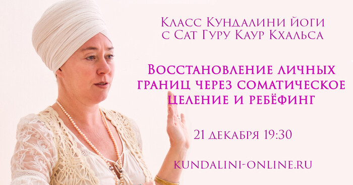 21 декабря "Восстановление личных границ через соматическое целение и ребефинг Кундалини Йоги" Онлайн класс Кундалини йоги и ребёфинг с Сат Гуру Каур Кхальса